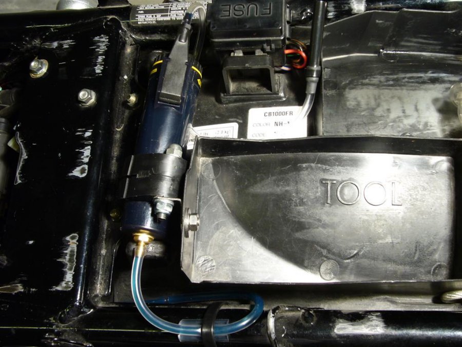 The reservoir can be mounted on the frame or under the seat. The more vertical the reservoir is mounted the better. Avoid positioning the reservoir completely horizontally, as this will limit the available range. Remember to avoid exhaust and engine components. For further information, see our easy step installation guide – Reservoir Positions.