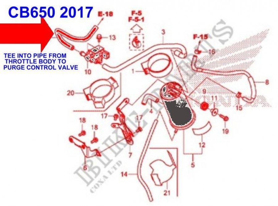 There is a vacuum pipe from the inlet tract on the cylinder head to the EVAP purge valve. You can read more about the EVAP System and how to identify the correct vacuum pipe here. Cut this pipe and insert the 4mm Tee connector, and push the vacuum damper elbow onto the third leg of the tee.