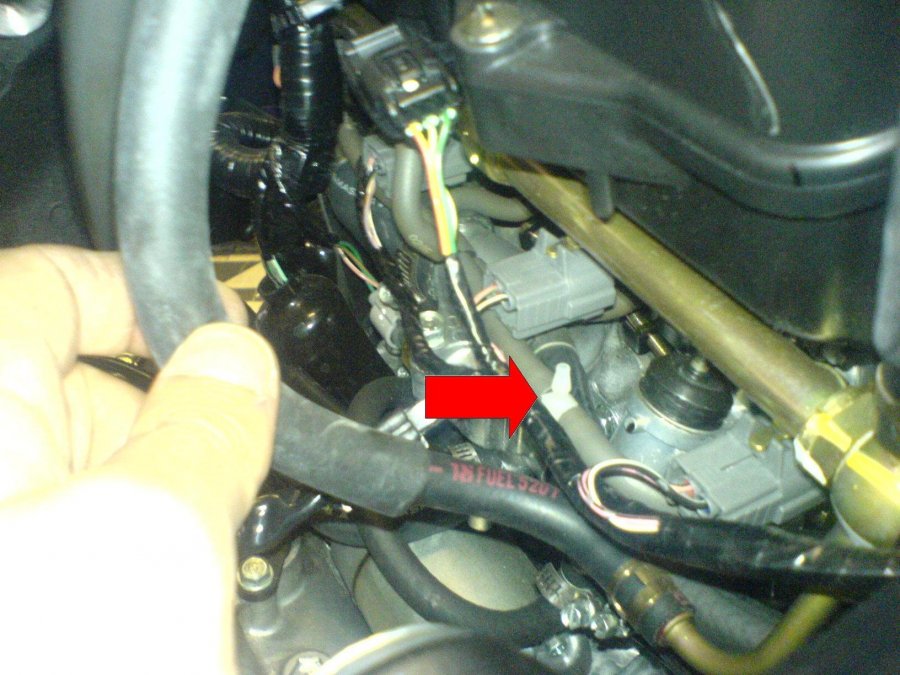 Locate the vacuum - there is a vacuum pipe leading to a MAP sensor. Cut into this pipe and insert the T-Piece from the Scottoiler kit. Then press the Damper Elbow onto the third leg of the tee. For further information see our easy step installation guide -Vacuum Connections General.