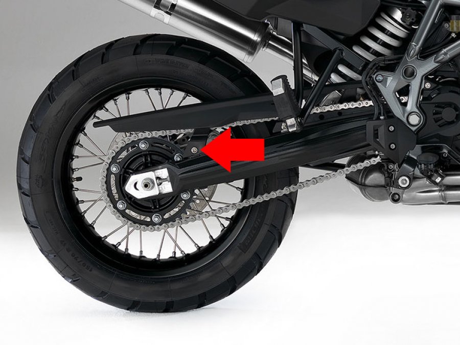 The Dispenser assembly can be secured on the chain guard bolt using the small dispenser plate and clip. The delivery tubing can be routed along the swing arm using self - adhesive cable clips. See our easy step installation guide - Dispenser Positioning. The nib should lightly touch the face of the rear sprocket, with the slash cut facing outwards.