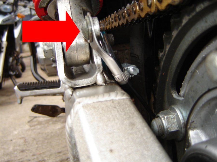 Assemble the dispenser mounting block and bolt the dispenser plate to the mounting block. Secure the dispenser on the dispenser plate using the dispenser clip. Clean the underside of the swing arm thoroughly, and prepare the area by wiping in one direction with the alcohol wipe and then firmly press the block on - with pressure, for 5 seconds. Ensure that the tip of the Injector touches the sprocket face, with the slash cut facing outwards.